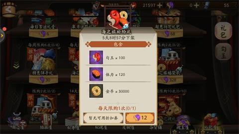 包括:100勾玉、120体力、3W金币