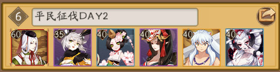 双吞不知火真天的阵容不用介绍了,脸即可。今天第二天大岳丸征伐难度仅次于最后一天,大家加油吧