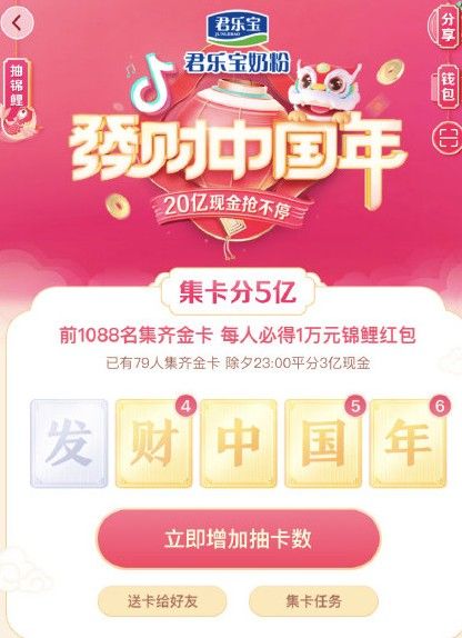 抖音发财中国年集卡攻略