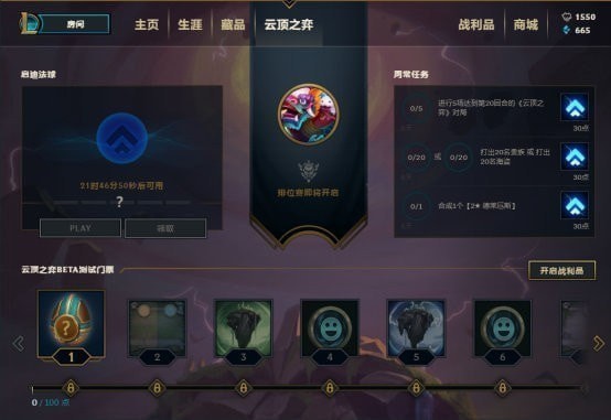 云顶之弈模式终于在国服开启测试,虽然不是所有的玩家都拥有测试资格,但是一个测试名额可以邀请多名玩家一起玩耍,而为了庆祝官方为各位召唤师们准备了丰厚的任务奖励,而这些是完全免费获得的!召唤师只要通过收集测试期门票点数,即可提升测试期门票等级,获得每个等级的奖励。