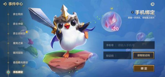手机绑定活动,接收信息输入验证码即可绑定成功,掌握第一手咨询的同时,还能够领取星之碎片奖励,星之碎片可用于提升小小英雄星级。