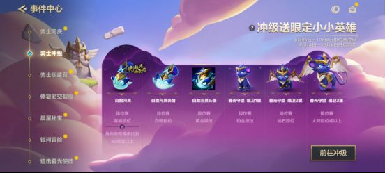 金铲铲之战正式上线将同步开启【开服冲级活动】。活动时间内,在“英雄之黎明排位赛”或“时空裂痕排位赛”任意模式段位达到指定段位,即可获得对应奖励。