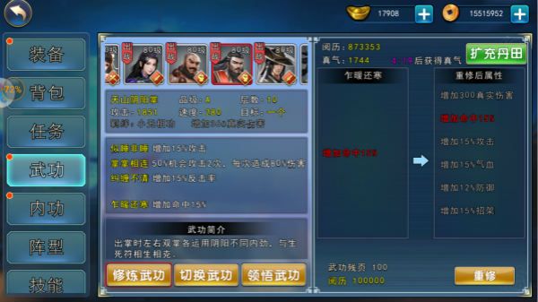 逍遥掌法:C级拳法,功德600点,无前置要求