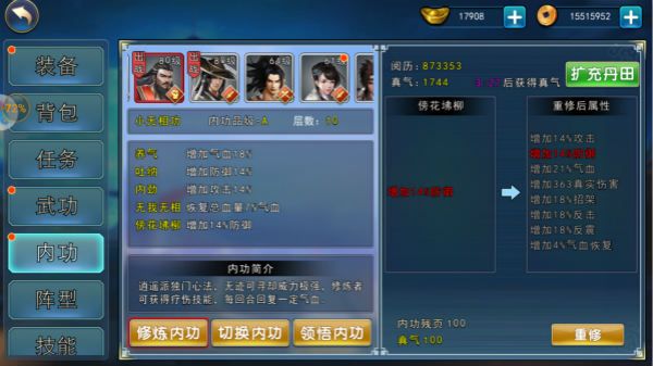 门派武功、内功: