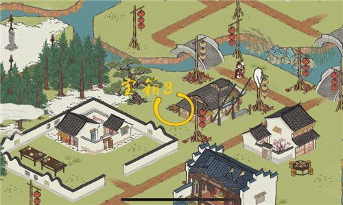 宝箱3位置参考物:在水井附近,也就是第一次放置物品的那家,上方的一个餐馆,在餐馆后面