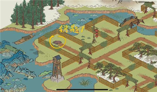 钥匙3位置参考物:还是刚刚养鸡场附近,不过就是换了一个森林,也只露出一个小角,细心一点就能看见