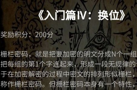 换位加密法,重新排列明文中字母位置的加密法,两种常见的换位加密密码:栅栏密码和柱形换位密码。