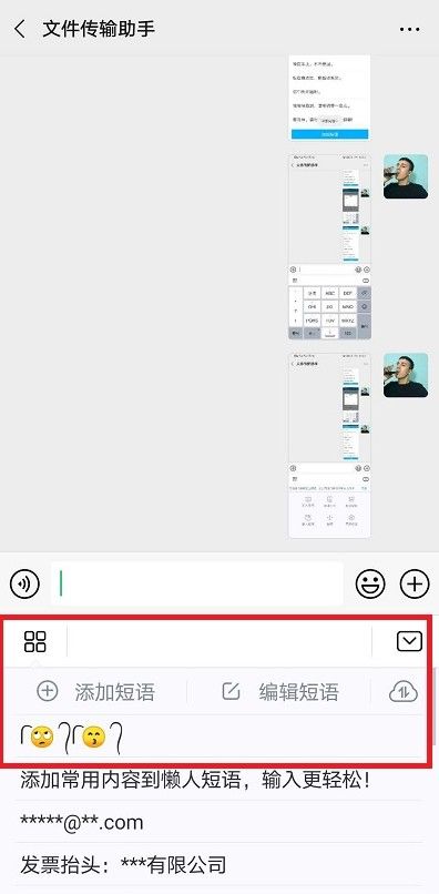 5、保存代码后即可看到代码在短语界面,小伙伴们可以点击懒人短语直接出现在输入框更改表情即可。