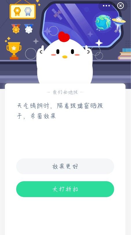 蚂蚁庄园隔着玻璃窗晒被子效果怎么样?天气晴朗的时候,家家户户都会拿出被子出来晒,不过有部分小伙伴因为一些原因,只能隔着玻璃窗晒被子,所以今天本站小编就来给大家分析分析隔着比例晒被子杀菌的效果。