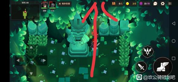开启支线后,随便走一个方向回到迷宫起点。然后按照小公主的路线重新走一遍迷宫到达冠军之剑的基座,然后从图中红标位置往上即可解锁最后一个宝箱,至此1-7全收集完毕。