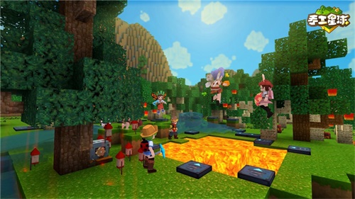 在广袤世界的孤独感是沙盒玩家的一大痛点,为此,《手工星球》通过加深玩家与游戏内容的互动性、竭力为玩家打造一个可以和朋友一起改造和生活的星球乐园,为实现多种形式的社交玩法打下了基础:所有方块地貌可破坏改造;所有动物可驯化乘骑;所有家具、物品和道具可制作并真实使用。制作组一方面通过多个主题星球丰富了可交互的方块、动物、道具的数量;另一方面,也参照现实引入了更多玩家可创造并使用的家具、厨具、交通工具等物品。