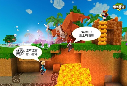 玩家与玩家间的交互也是《手工星球》社交玩法的一大乐趣点。在体验游戏的过程中,不妨试试玩坏路人或者队友?由于沙盒游戏的超高自由度,打怪不仅不是游戏的主要目标,就连打怪的方法也能千奇百怪。设置陷阱、利用自然地势、修造攻势都能成为你攻克怪物的方法,而这些装置不仅坑怪,还可能坑坏你的队友。