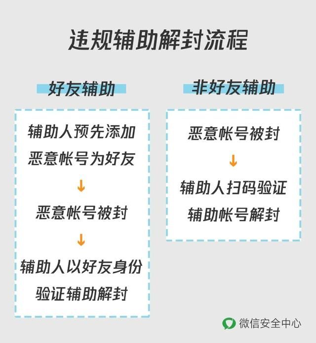 针对这一乱象,今年4月,《微信个人帐号使用规范》中明确规定:对违规辅助他人解封的帐号限制使用微信全部或部分功能,并进行短期或长期封号处理。