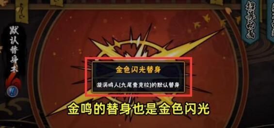 最后再说一下金鸣的其他细节,关于这个忍者的称号,你看文章的第一张图就能够发现,金鸣的称号叫做“金色希望”,一般情况下,高招忍者的称号都是比较普通的文字形式,不会有什么花里胡哨的效果出现。而金鸣的默认替身效果居然是跟波风水门一样的金色闪光,不愧是父子俩,替身的效果也可以通用。