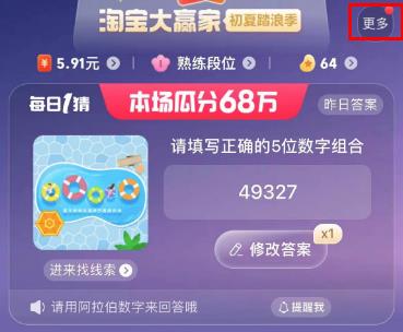 1、首先我们从淘宝主页面进入到淘宝大赢家的活动当中,进入之后我们就可以看见每日1猜的活动问题。