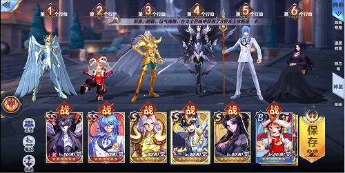 本期阵容推荐为:神星矢、贵鬼、冥王、穆、海皇、潘多拉。双ss阵容,神星矢可以将前期的能量利用效率最大化,配合其余斗士的协战可以造成高额的伤害,同时潘多拉、穆的反制保护组合,能够给予我方斗士最大程度的保护,冥王和海皇作为游戏中目前仅有的两张ss卡,相辅相成,攻守兼备。这套阵容中,海皇传奇小宇宙以巨人王优先选择,提高身板的同时,增加自身补刀能力,冥王、穆、潘多拉选择龙牙地生,神星矢火神锁链,贵鬼则是正常的水泽精灵,众神技选择死斗。