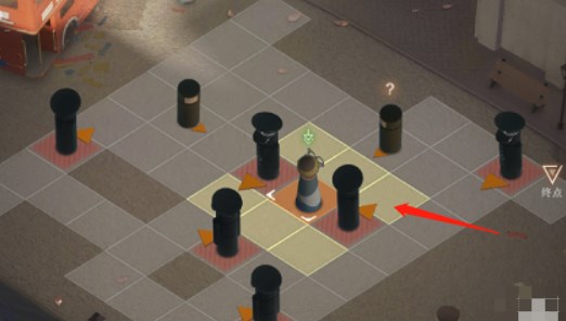 4、这里我们需要出来拿到另外一个道具,利用这个道具把游客引到可以阻挡警察的位置,我们先来到下图这个位置,行动路线图如下。