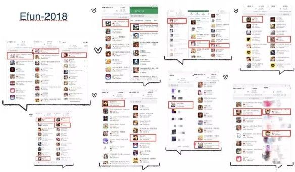 Efun部分产品在各区排行榜上的成绩