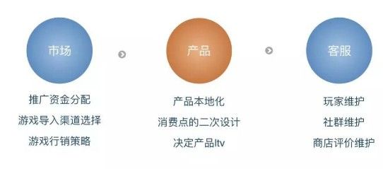 其二是产品。产品方面,本地化非常重要,包括游戏的题材、画风,产品在二次设计时的数值调整等。