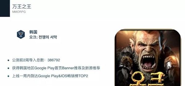 另一款游戏《万王之王》在上线一周时间内到进入了双端畅销榜前二,目前稳居古哥 play畅销榜前十。《万王之王》公测前两周导入用户总数超过38万,对于韩国市场来说,一般重度游戏上线半年能导入的用户量在20~90万之间。