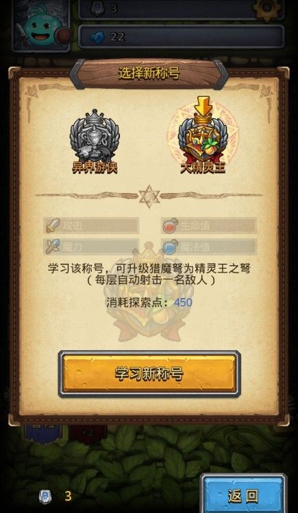 学习/升级该称号,可升级猎魔弩为传奇之弩(每5轮自动射击一名敌人)