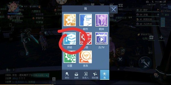 3、进入这一选项,然后玩家便可以和其他玩家建立师徒关系,一个师傅可以招收多个徒弟,而且没有出师的徒弟也可以继续招收徒弟。