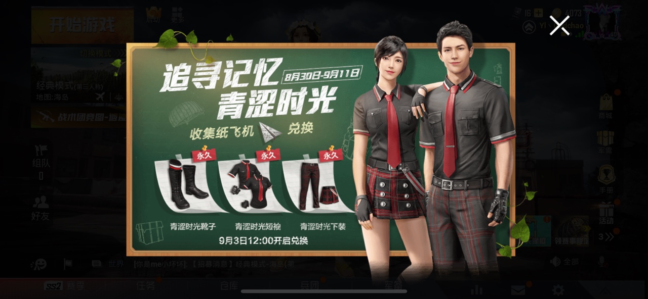 收集纸飞机,兑换青涩时光套装。