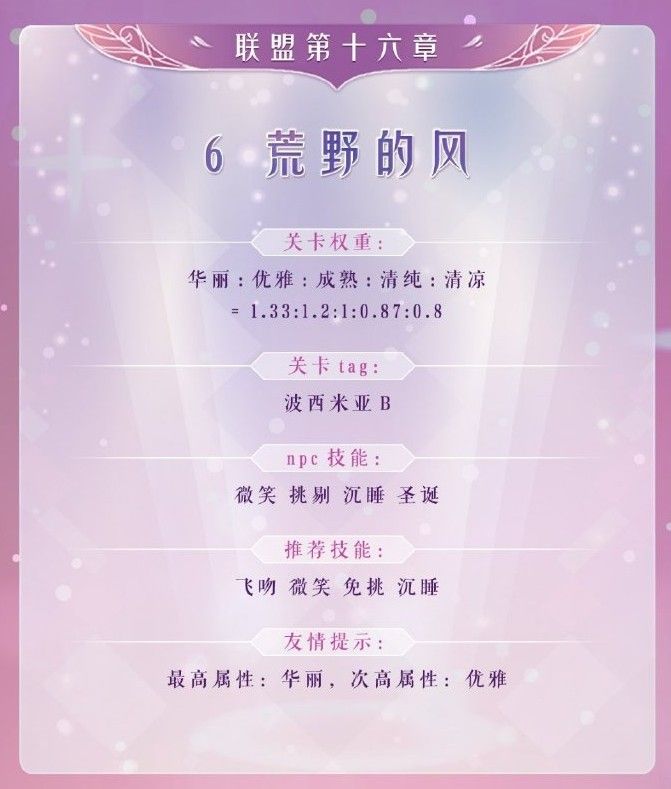 关卡权重:华丽:优雅:成熟:清纯:清凉=1.33:1.2:1:0.87:0.8