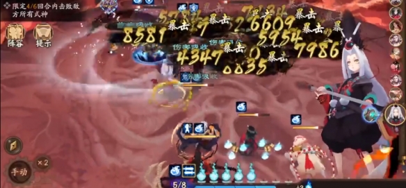 第三回合:我方阿修罗使用三技能'炼狱虐杀',目标敌方式神。