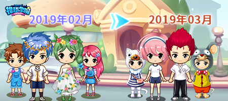 “激情向日葵”将在2019年3月1日进行新一轮的服装替换。【百花女神/百花王子】、【蓝装/蓝白小裙装】将暂时从“激情向日葵”中移除,新加入到向日葵免费服装阵营中的是【老鼠/猫咪】、【运动教练/运动少女】!