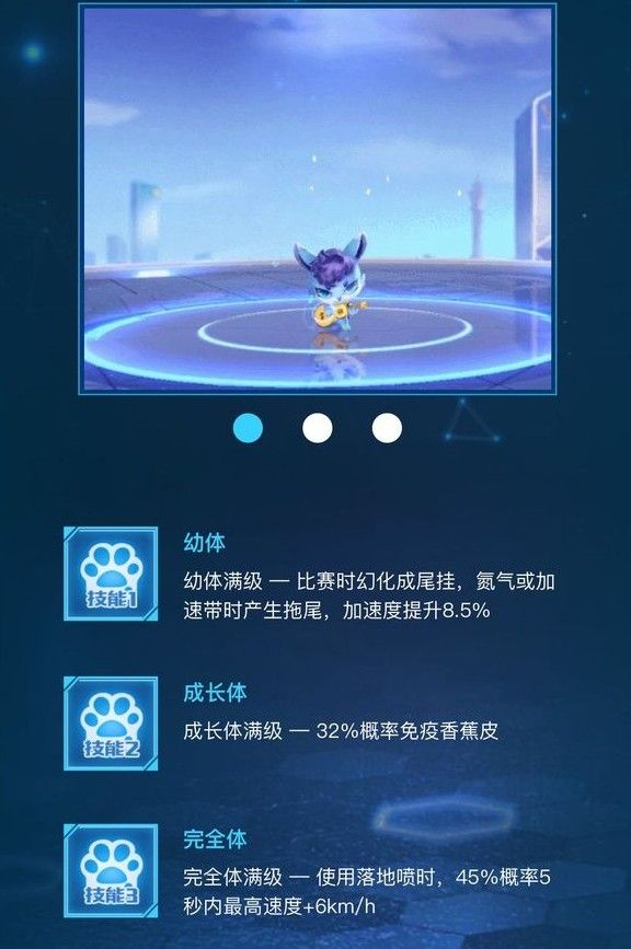 幼体满级 — 比赛时幻化成尾挂,氮气或加速带时产生拖尾,加速度提升11.4%