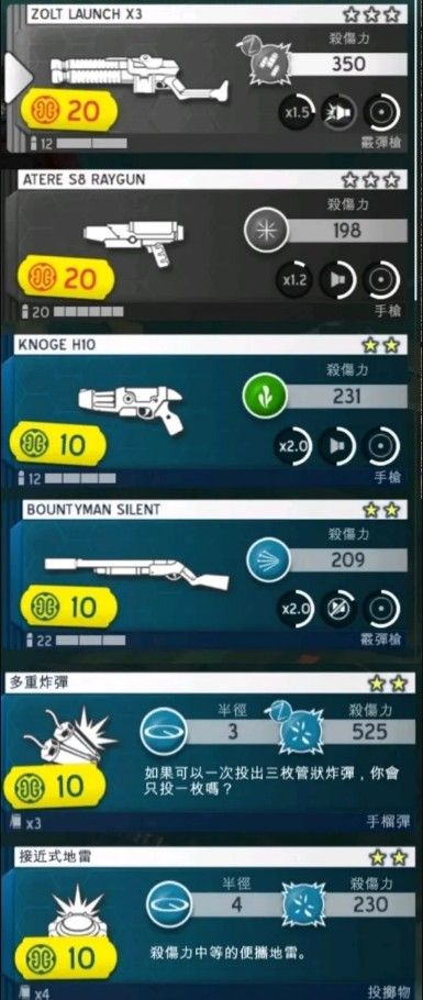 你可以使用市集币去购买这些装备:散弹枪、手枪、炸弹、地雷(详细如图)