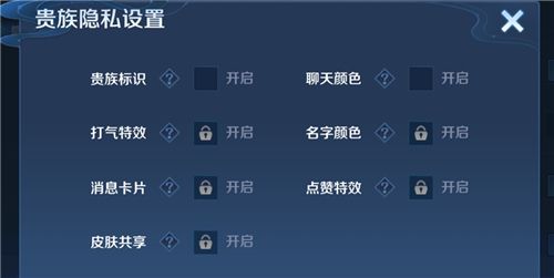 如果你想隐藏【聊天颜色、名字颜色、皮肤共享、打气特效、点赞特效、消息卡片】的特权,以同样的方式取消选中状态,就能全部关闭显示了。(PS:这些特权会根据贵族等级解锁,贵族等级低于要求默认锁定。)