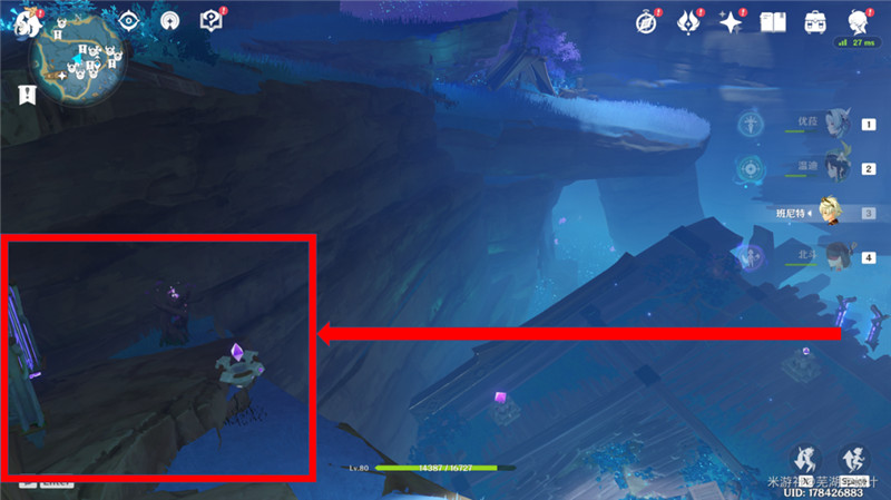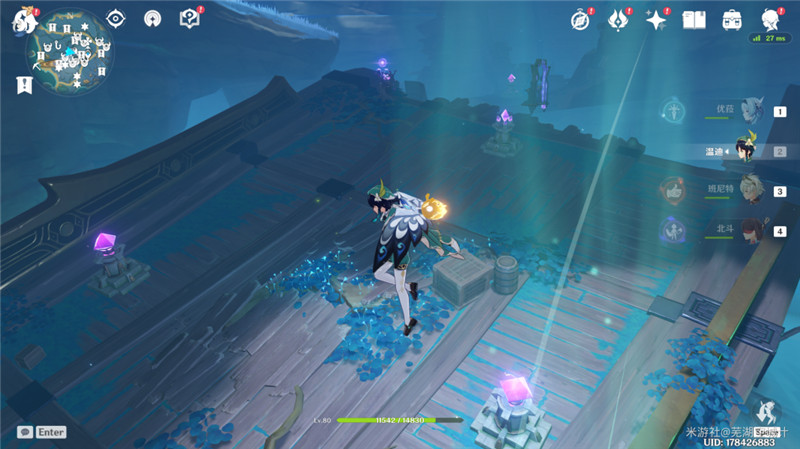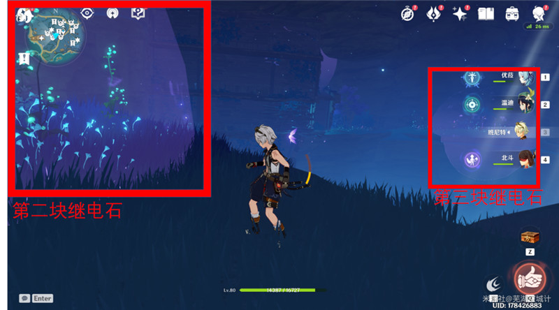 同样,我们再次回到一号继电石的位置,拿一次雷种子,传送回船尾上方的【雷传送门】,通过转动船尾部分的【雷传送门】,我们可以快速携带【雷种子】传送到含有三号继电石的【雷种子结界之中】(操作慢了会让雷种子消失,然后进不去结界被摔死。别问我后面优菈怎么死的。。)