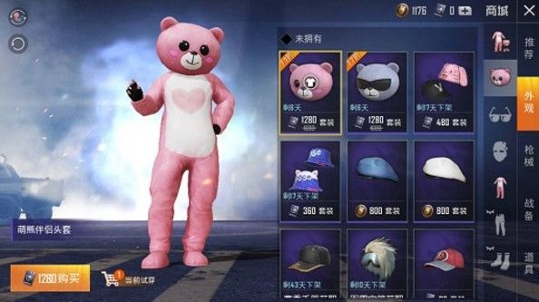 上架是有出售最新套装的,这个是限时的折扣上架,到时候就会没有折扣,但是也是会上架在商城。一开始都是有7折的折扣,这里也是有1级背包、2级背包、3级背包的粉色小熊装饰,有的女生就特别喜欢这套新出的套装。价格算是还不错的,两套的价格合起来就是300左右,一个降落伞是48块。
