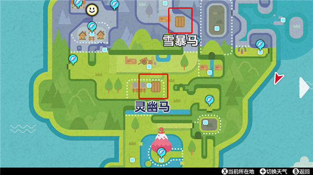 然后推剧情,你将根据种出的萝卜种类,决定召唤出的是黑马还是白马。种田的地点如下图所示,想要哪种马,就在对应的地方种田。雪暴马为冰系宝可梦,灵幽马是幽灵系宝可梦。