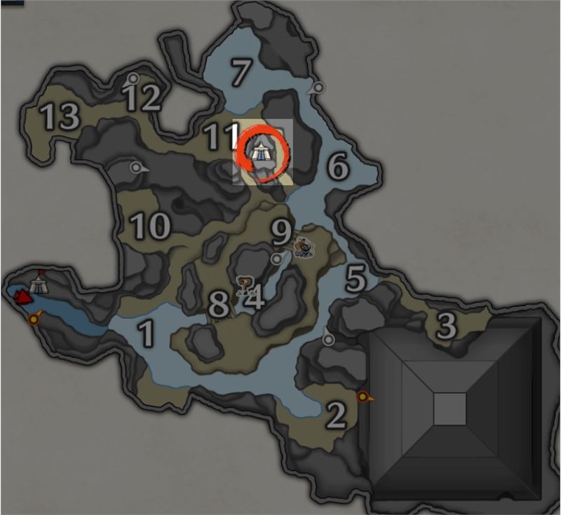 只有一个营地,在11区中间那个小山上面。