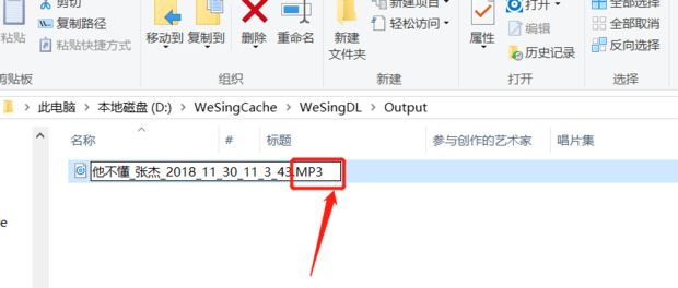 4、最后就能够看到保存好了的音乐了,长按该文件选择“重命名”将m4a删除改为mp3即可。