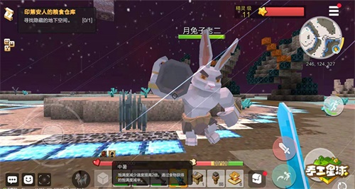 除了月兔家族,月球上还生活着一些人畜无害的小动物,太空狗、太空牛、太空猪等等,它们分布在各个区域,不会主动攻击冒险家。是不是忍不住想尝尝“太空牛肉”和地球上的有什么不一样?那赶紧来月球背面狩猎吧!