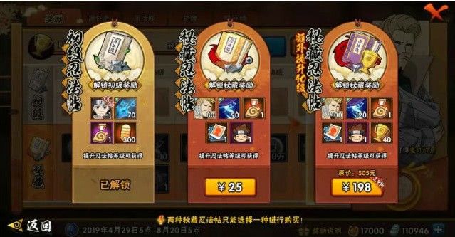 4.4月10日00:00至4月16日24:00,购买秘藏忍法帖可额外获得一份特惠奖励;