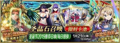 1月7日维护后~1月21日13:59为止,限时卡池「圣诞节2019推荐召唤(每日替换)」开启!