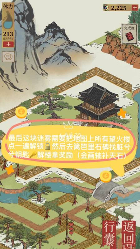 解锁这些望火楼,就能去石碑里找钥匙,开小楼拿奖励,这也算是这次探索里面的最后一个任务了吧,本次探索难度还是很低的。
