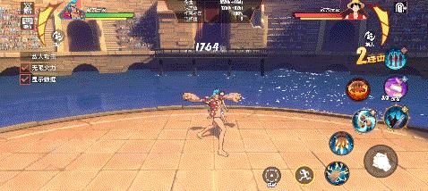 再拿路飞举例,路飞开启一技能冲过来的过程中,我们顺势开启二技能,因为路飞没有霸体效果,我们可以把他打出僵直,接普攻或者是技能的第2段打输出。