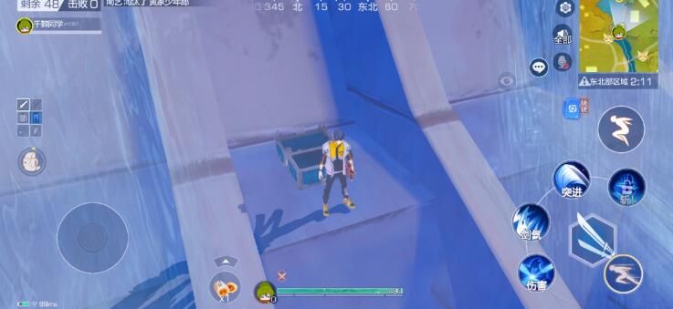 在这里给大家分享几个蓝色宝箱的获取技巧,首先桥这里的宝箱很好找,直接跳到这个平台上,你就能看到宝箱的位置,然后跳下去向前走直接跳三次就能翻过前面的墙,找到蓝色宝箱。这个宝箱很多人找不到,主要是跳的次数和宝箱的位置,宝箱被第三次跳跃后面的那个墙挡住了,所以不是很明显。