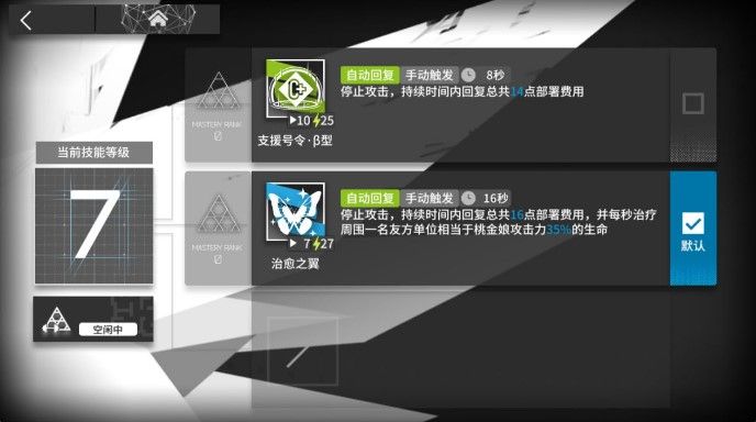 4.干员释放技能时的持续时间并不相同,所以技能的收益也会有差距。以桃金娘为例,1、2技能的消耗差不太多,但是1技能持续时间更短,所以在需要快速回费时,1技能比2技能持续时间更短,所以更有效率。