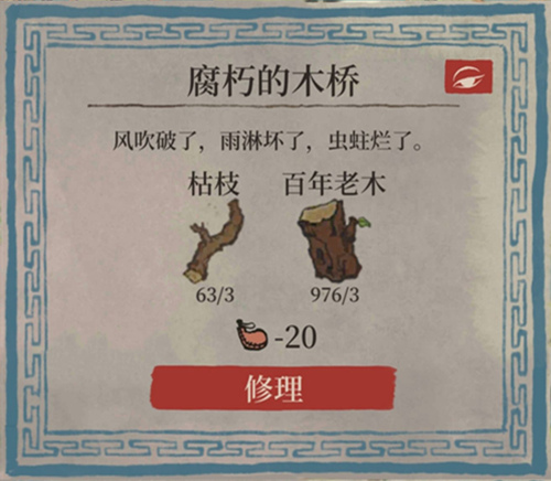 1、花费枯枝、百年老木和体力,去修复腐朽的木桥。