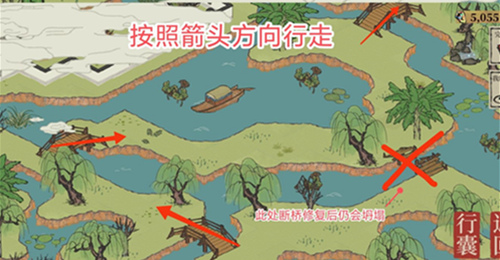 2、按下图所示的路线走,不要走右边的断桥。