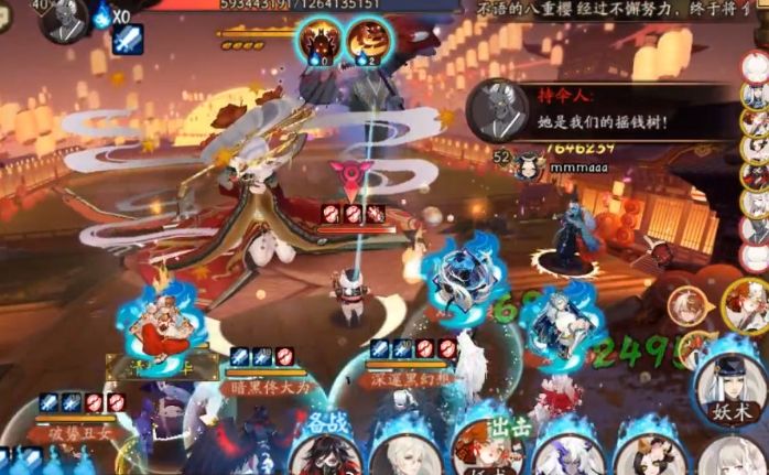阵容2: 普攻系式神+不知火+荒/姑获鸟协战队伍(同样由SP妖刀姬击杀小怪叠buff)