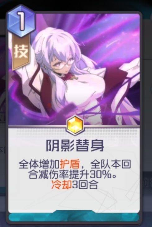 全阵容仅有的防御手断非常可观的护盾自己最关键的百分比减伤而且费用低物美价廉,是第一回合必要的防御手段,第二回合对面差不多也没了(滑稽)