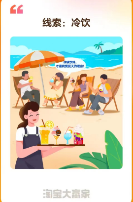 1、进入淘宝大赢家的每日一猜页,可以发现左侧图是关于沙滩旅游的,相信大家完全没有头绪,然后提示是【输入阿拉伯数字】,接着直接进入线索页;
